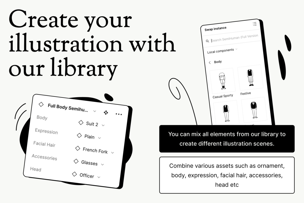 SemiHuman is a minimalist illustration product that can be easily customized with more than 140+ components. You can create characters and adapt them to the existing scene!