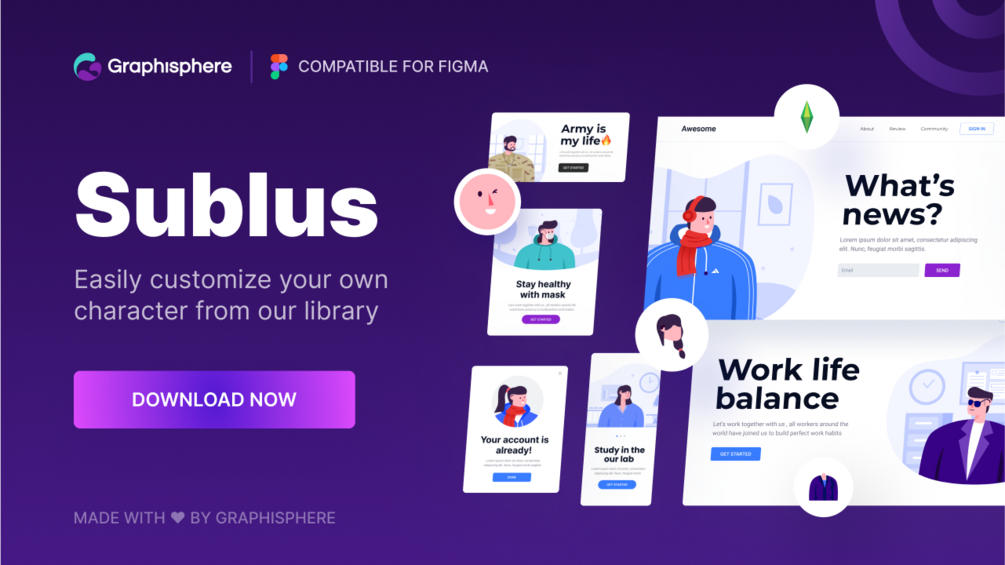 Sublus is an illustration product that can be easily customized with more than 120+ components. You can create characters, avatars, or adapt to the existing scene!