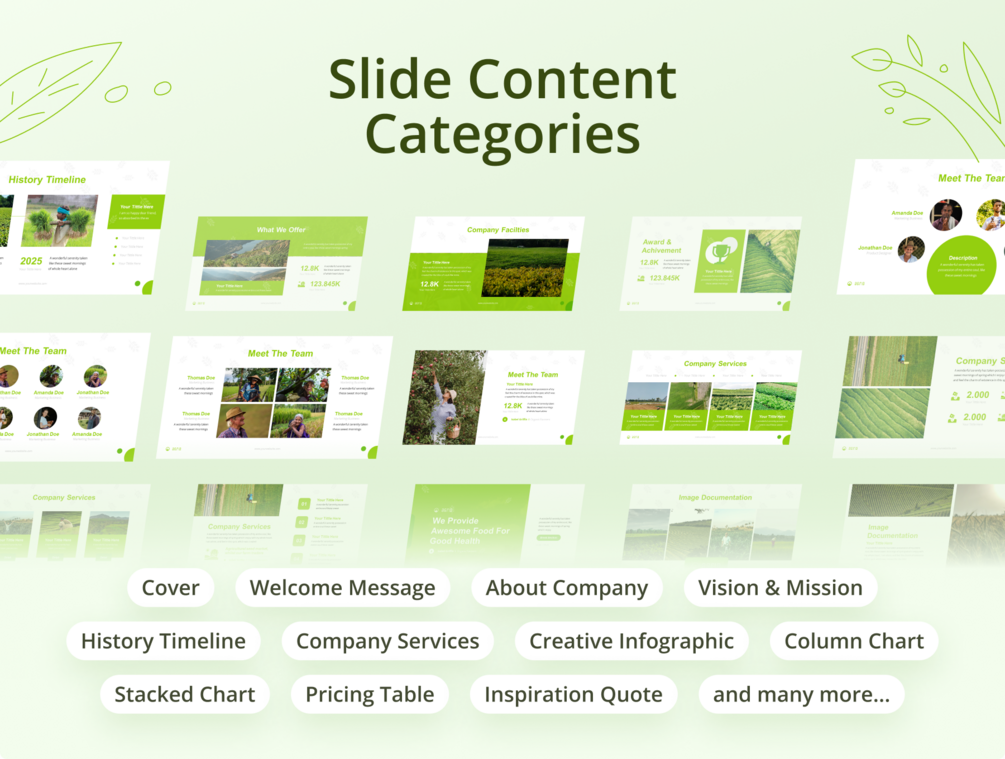 Harness the power of impactful visuals and compelling content effortlessly, with the aid of our meticulously crafted template. What's more, the incorporation of free Google Fonts adds a professional touch, ensuring a polished and coherent look throughout your presentation. Whether you're showcasing agricultural data, sustainability initiatives, or industry insights, the Agrid template is your key to leaving a lasting impression. Elevate your agricultural presentations with our versatile and user-friendly Agrid template today.